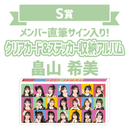 S-1-22 メンバー直筆サイン&当選者のニックネーム入り!クリアカード&ステッカー収納アルバム 畠山 希美