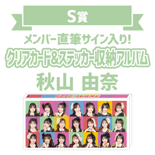 S-1-28 メンバー直筆サイン&当選者のニックネーム入り!クリアカード&ステッカー収納アルバム 秋山 由奈