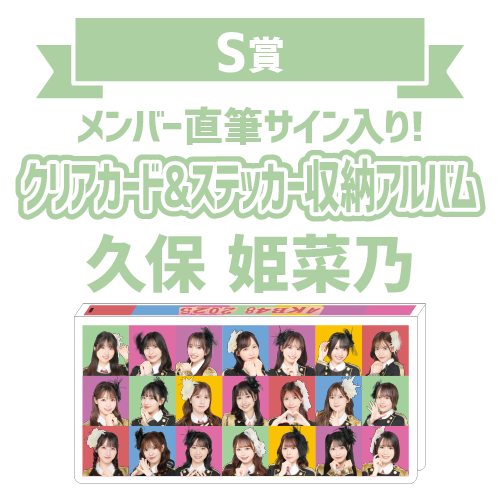 S-1-31 メンバー直筆サイン&当選者のニックネーム入り!クリアカード&ステッカー収納アルバム 久保 姫菜乃