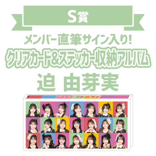 S-1-32 メンバー直筆サイン&当選者のニックネーム入り!クリアカード&ステッカー収納アルバム 迫 由芽実