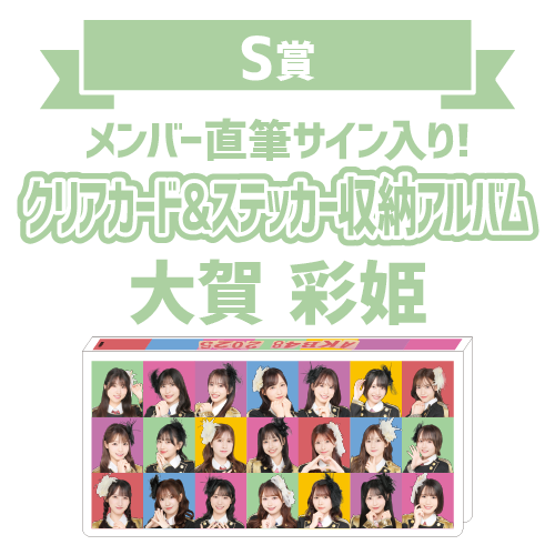 S-1-40 メンバー直筆サイン&当選者のニックネーム入り!クリアカード&ステッカー収納アルバム 大賀 彩姫