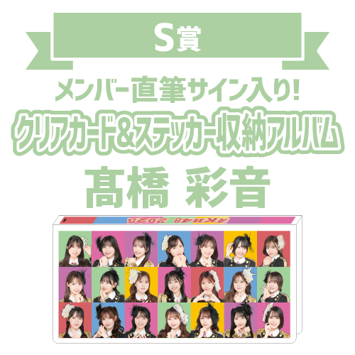 S-1-8 メンバー直筆サイン&当選者のニックネーム入り!クリアカード&ステッカー収納アルバム 髙橋 彩音